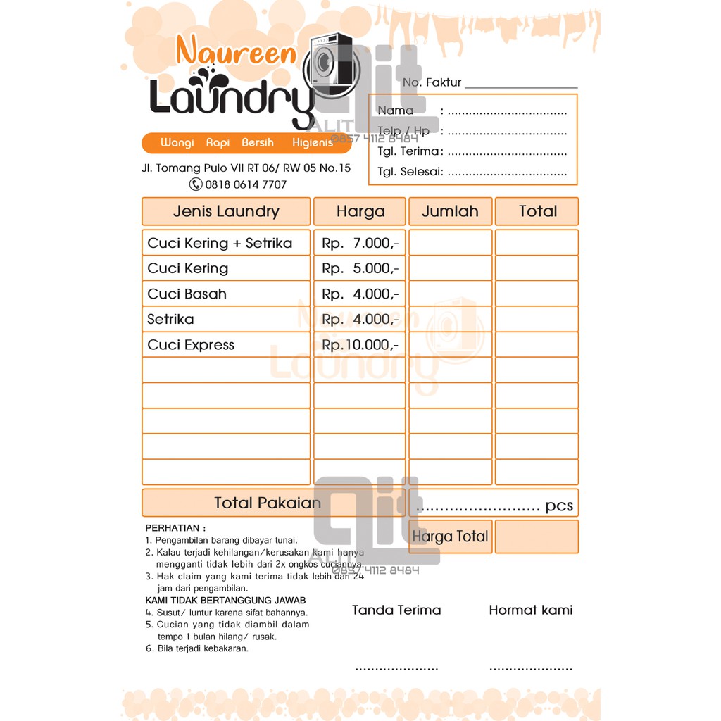 Nota 3 ply untuk laundry toko klinik dll bahan ncr, rp310.000. Beli cetak nota/bon laundry terbaru di shopee. Nota kontan custom untuk laundry toko klontong bengkel apotek dll, rp260.000. Kumpulan gambar tentang contoh nota laundry kiloan dan satuan, klik untuk melihat koleksi gambar lain di kibrispdr.org. Anda membutuhkan contoh nota laundry untuk usaha anda ?